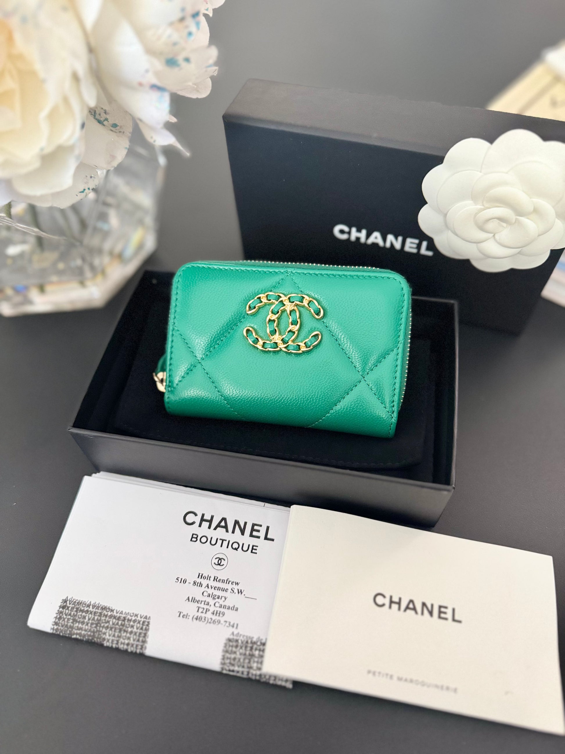 Chanel 19 Lambskin Zip Around Coin Purse / Card Holder