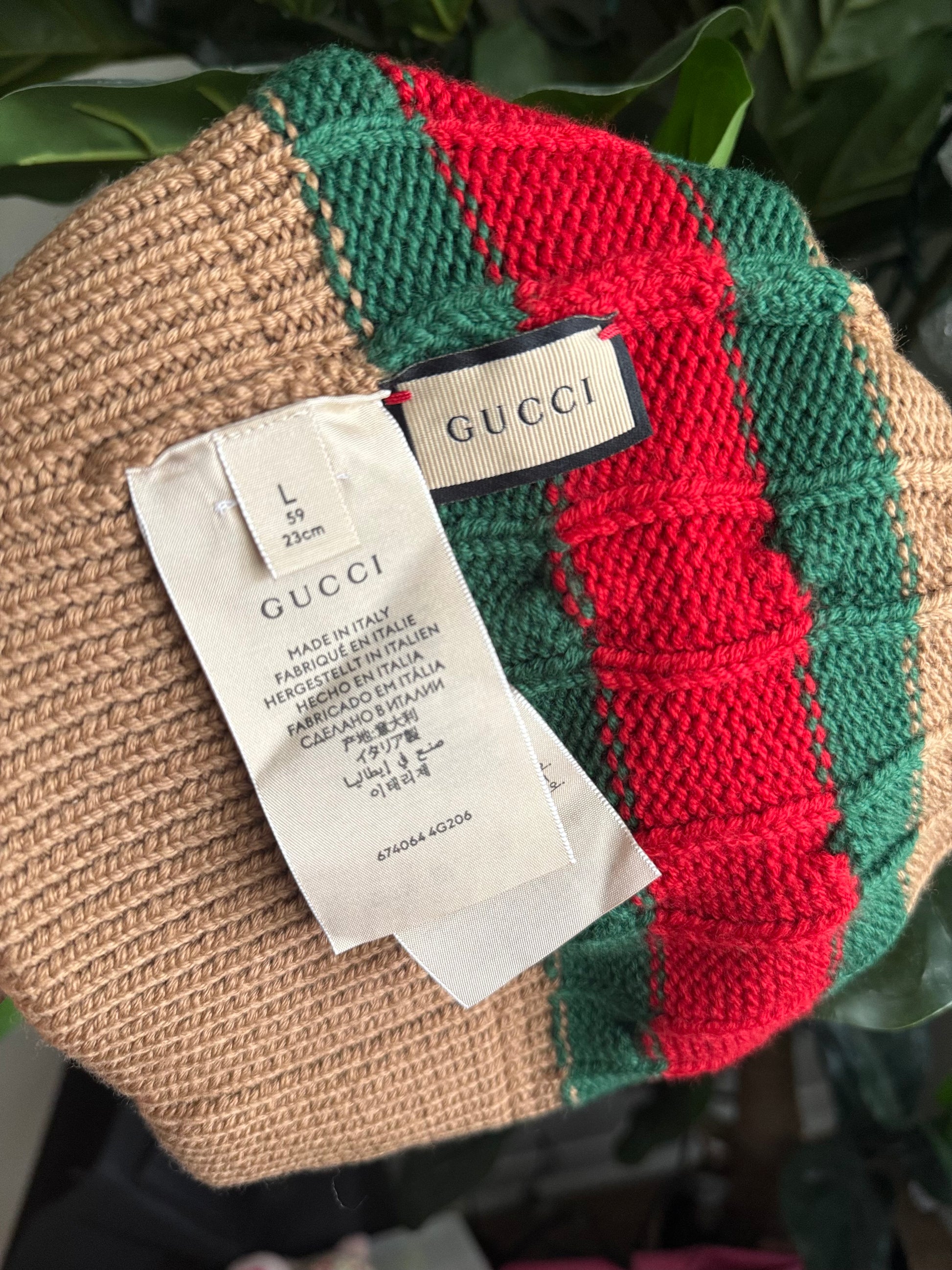 GUCCI WEB STRIPE KNIT WOOL BEANIE