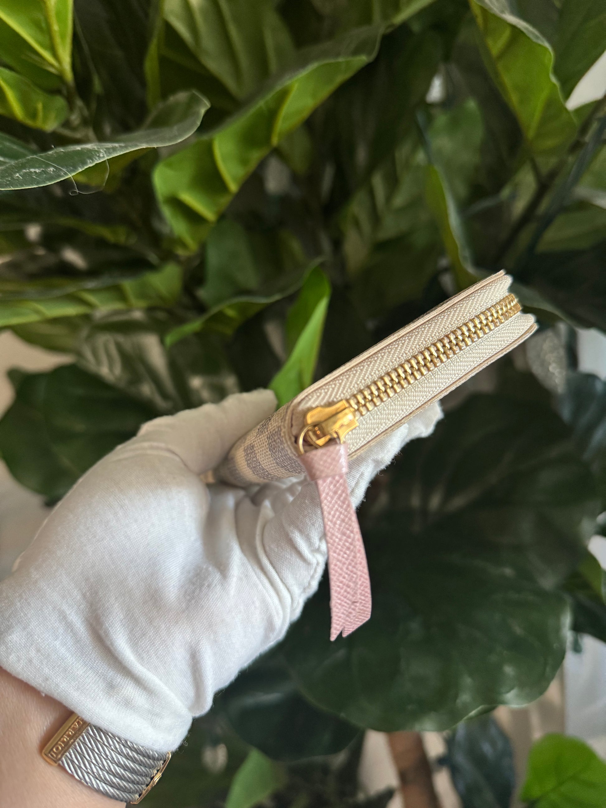 LOUIS VUITTON CLEMENCE WALLET IN DAMIER AZUR WITH ROSE BALLERINE INTERIOR